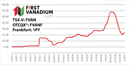 Both supply and demand pressures pushed vanadium prices up over 11-fold in the last 3 years.