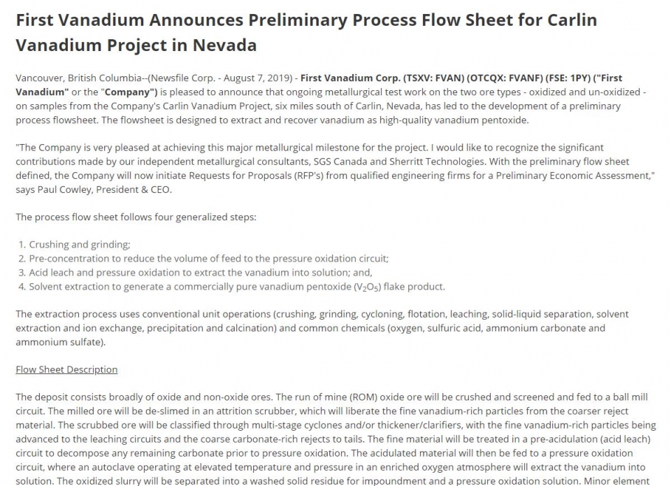 First Vanadium Corp's deep board management, business and technical team's core competence is in exploration, permitting, development, construction, and operation of mining projects in the USA, Canada and overseas. (Over 400 years combined)